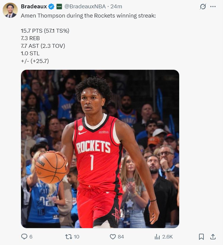 7项第一+3项第二!火箭蜕变太快还补控卫吗?阿门奥科吉均有巨大贡献