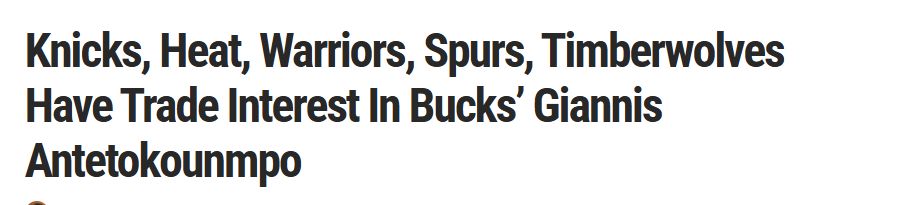 北京时间12月14日,据名记Haynes报道,尼克斯、热火、勇士、马刺以及森林狼,均有兴趣通过交易引进雄鹿的超级巨星字母哥。