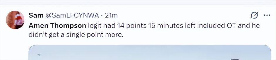 火箭记者在比赛最后15分钟之前阿门就拿到14分,随后阿门-汤普森是一分都没有拿。