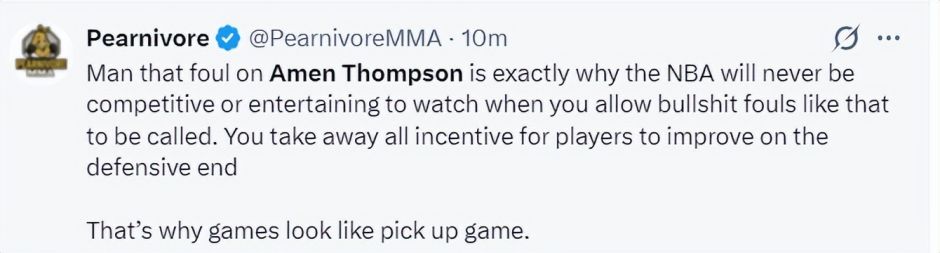 美媒:阿门这场比赛关键时刻的糟糕表现恰恰说明NBA不具备竞争力与观赏性,这种程度的接触都不被允许还算竞技体育吗。不允许球员防守怎么提升防守水平。