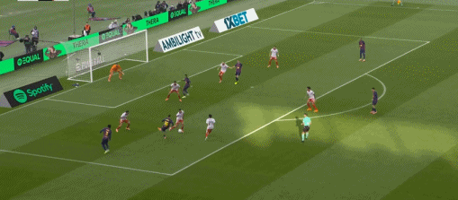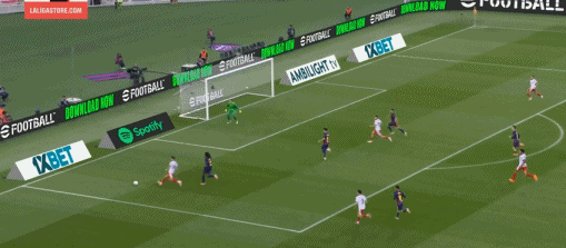 第90+3分钟,绝杀!替补担任中锋的阿劳霍铲射得手,巴萨2-1领先赫罗纳!
