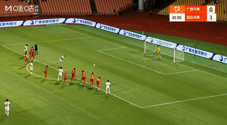 第82分钟,乌卡楚克乌造点,福布斯主罚命中,延边龙鼎2-0广西平果
